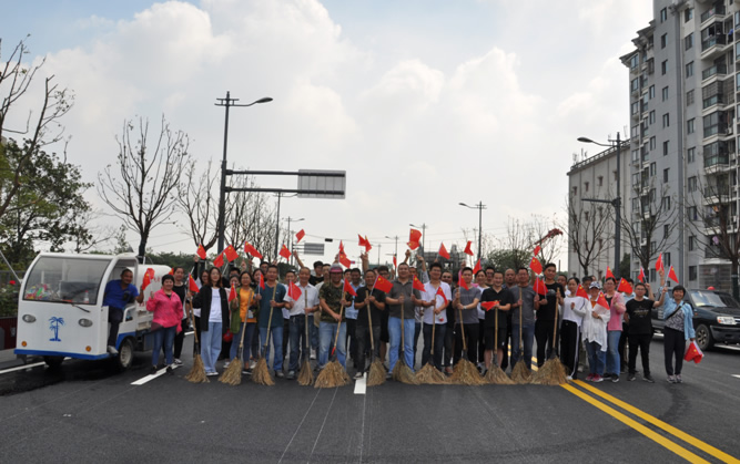 公司组织员工前往三元路项目现场义务劳动,助力三元路顺利通车。