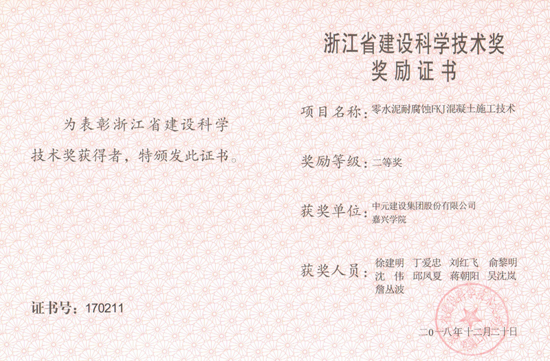 2017年浙江省建设科学技术奖