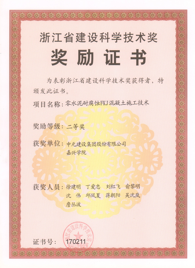 2017年浙江省建设科学技术奖