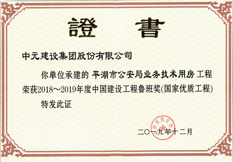 2018-2019年度中国建设工程鲁班奖(国家优质工程)(平湖市公安局业务技术用房工程)(1)