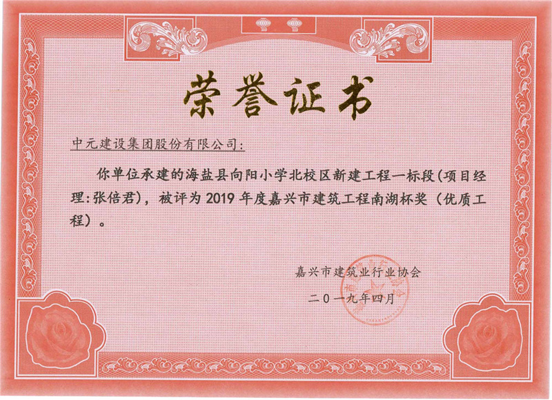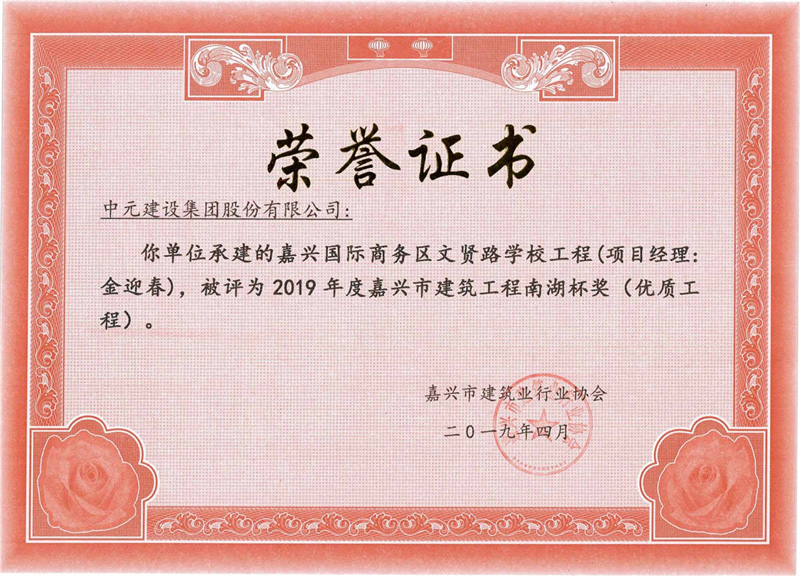 2019年度嘉兴市QY球友会体育官网南湖杯奖(优质工程)国际商务区文贤路学校工程