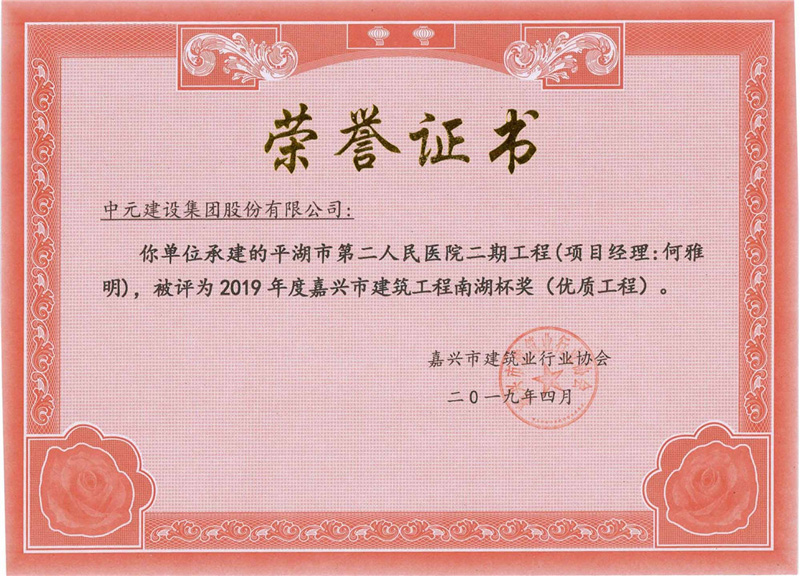 2019年度嘉兴市QY球友会体育官网南湖杯奖(优质工程)平湖市第二人民医院二期工程