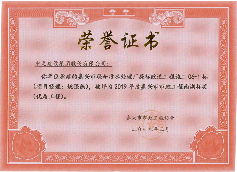 2019年度嘉兴市QY千亿体育南湖杯奖(优质工程)嘉兴市联合污水处理厂提标改造工程施工06 1标