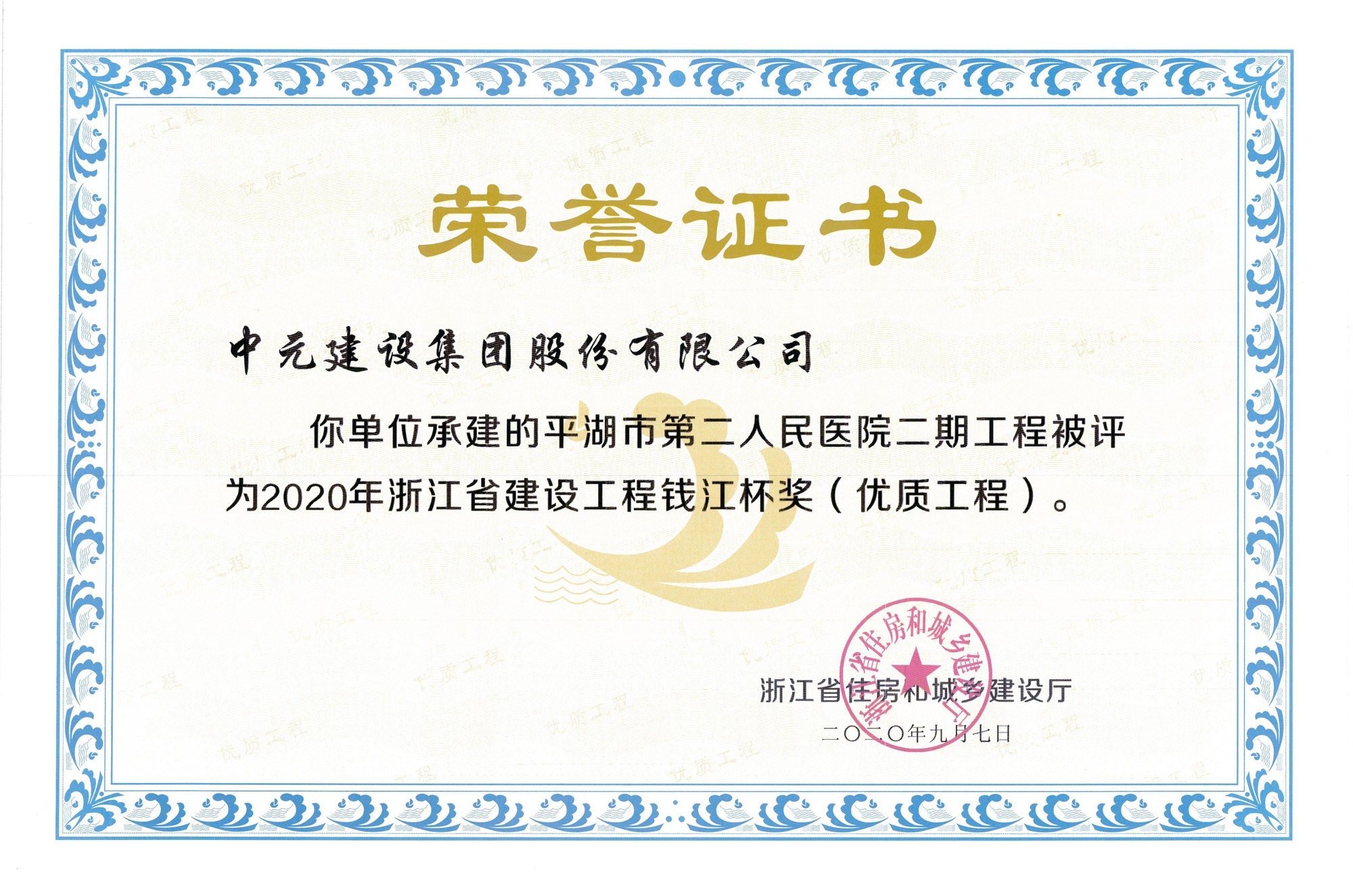 2020年度浙江省建设工程钱江杯-平湖市第二人民医院二期工程