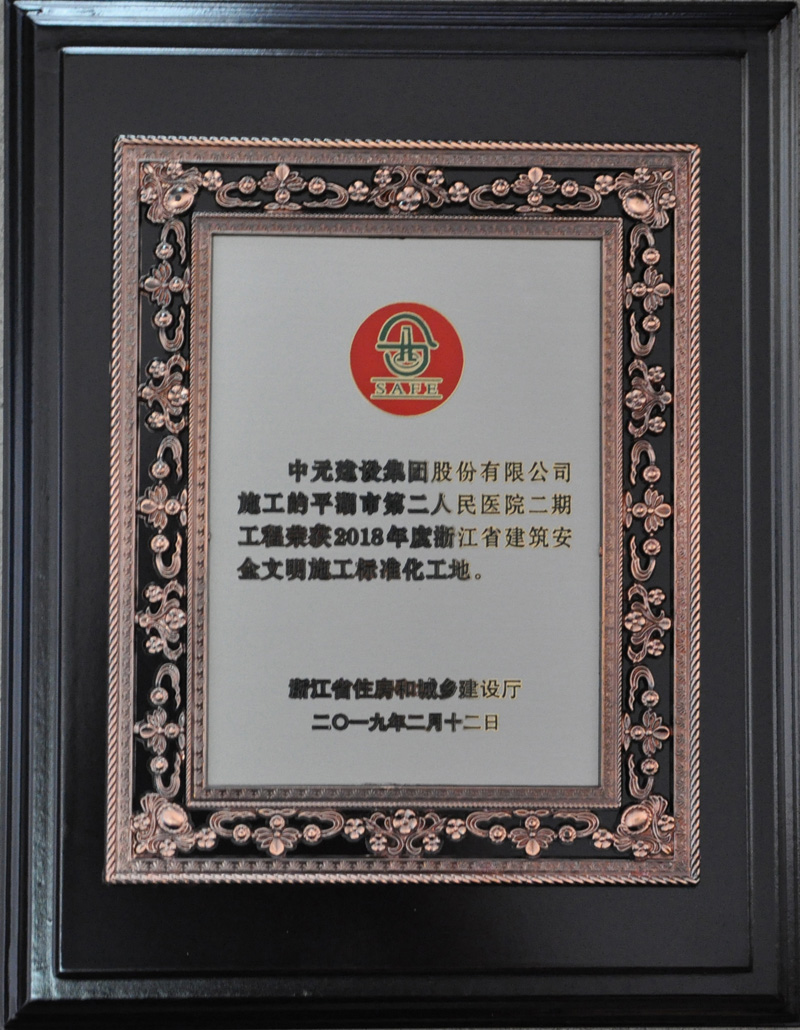 2018年度浙江省建筑安全文明施工标准化工地(平湖市第二人民医院二期)
