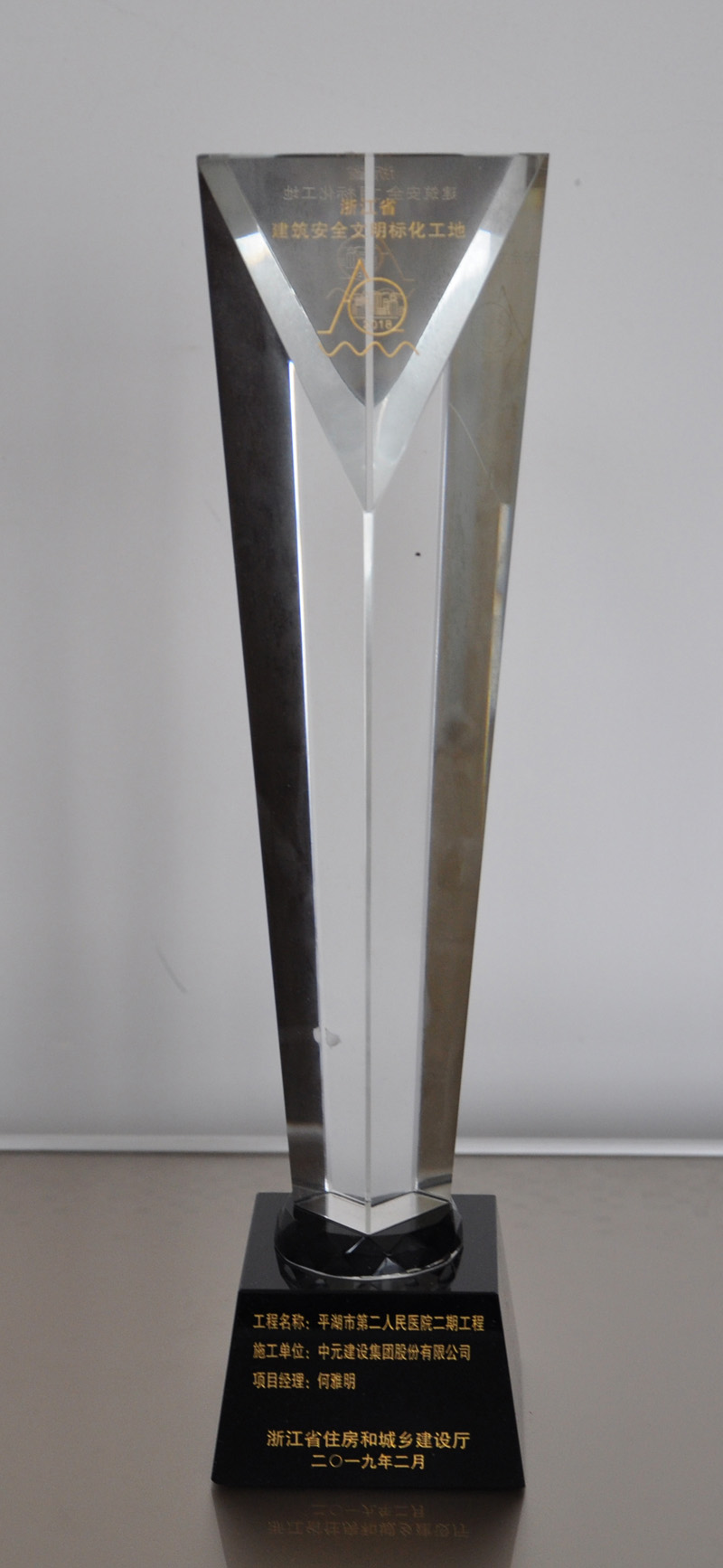 2018年度浙江省建筑安全文明施工标准化工地(平湖市第二人民医院二期)奖杯