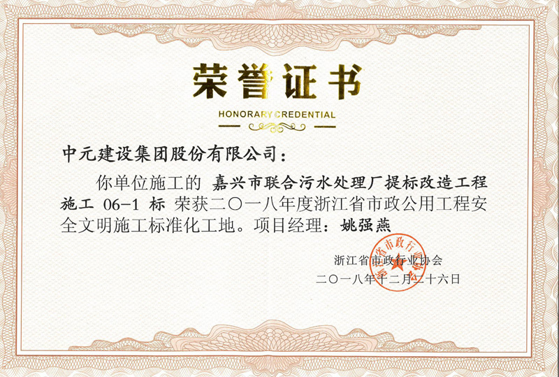 2018年度浙江省市政公用工程安全文明施工标准化工地(嘉兴市联合污水处理厂提标改造工程施工06-1标)