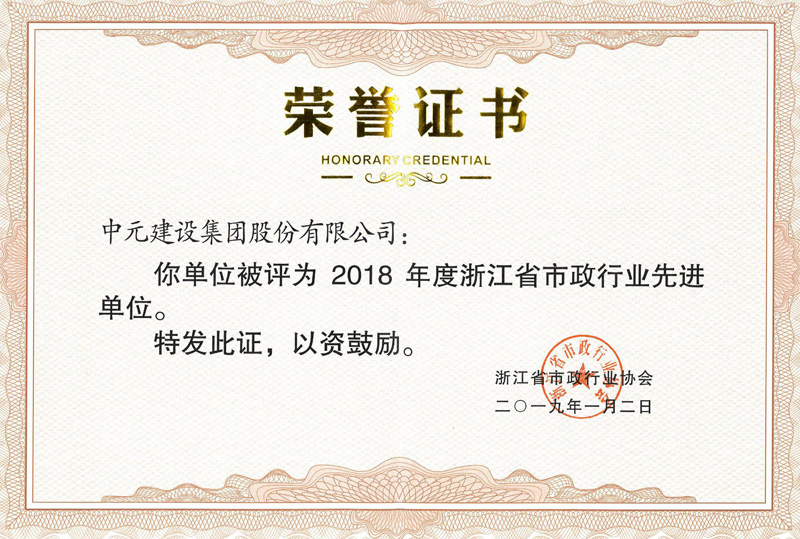 2018年度浙江省市政行业先进单位