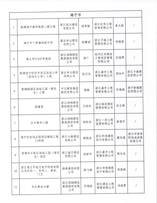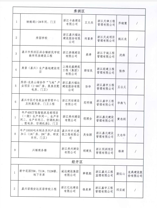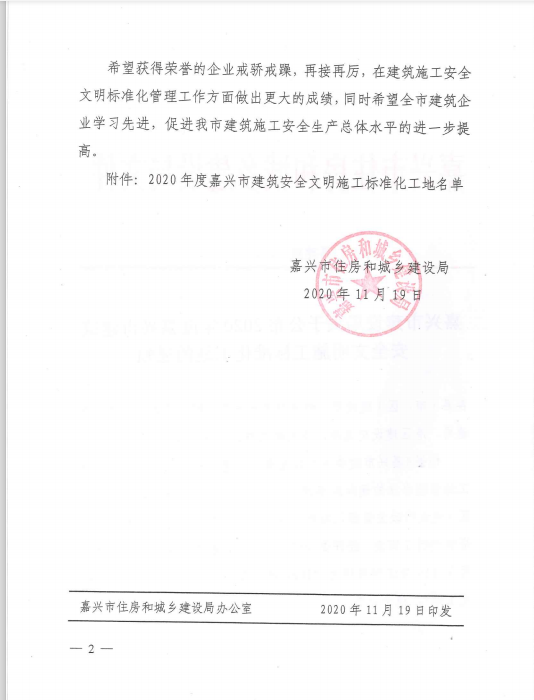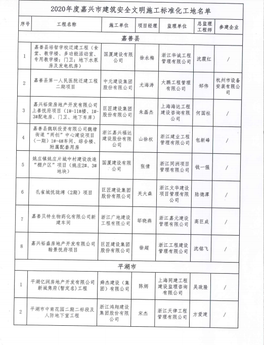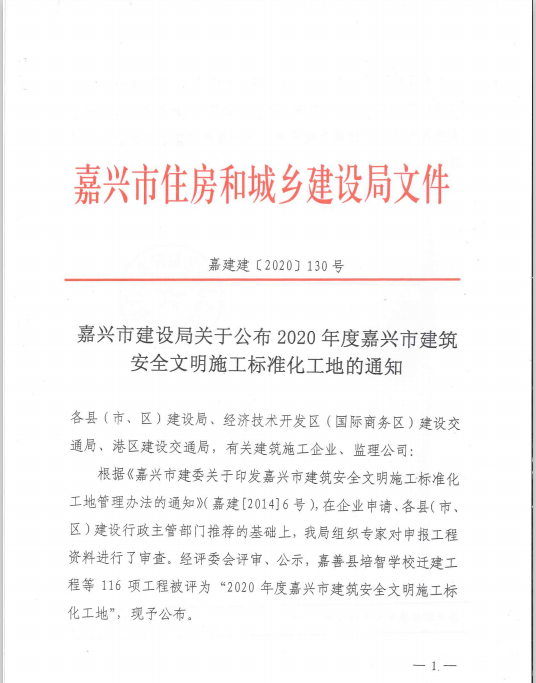 嘉兴市建设局关于公布2020年度嘉兴市建筑安全文明施工标准化工地的通知